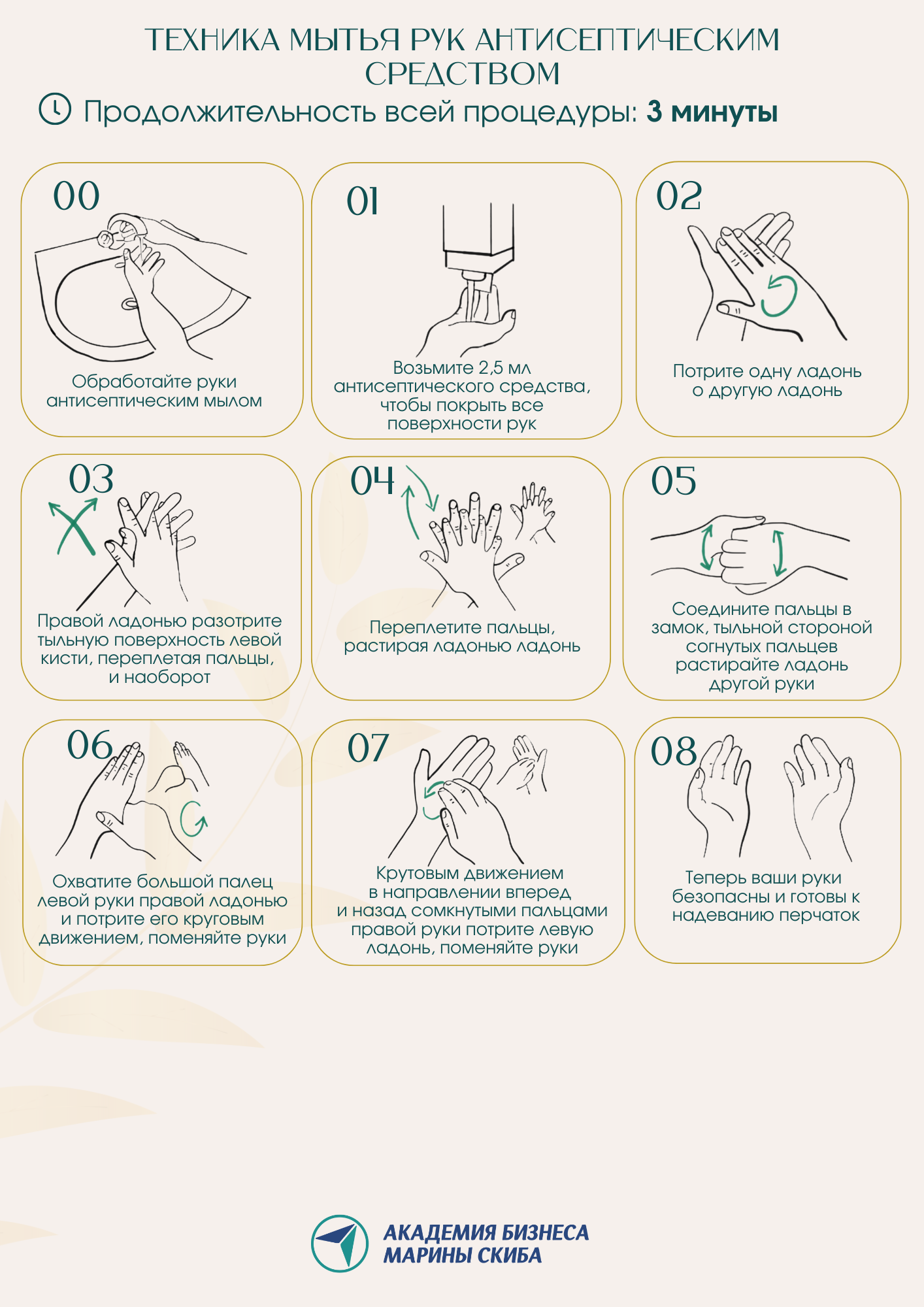 Предположим, Вы описываете процесс качественной обработки рук мастера во время обслуживания клиента.